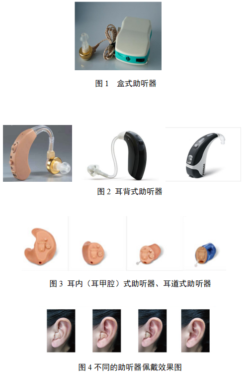 助听器按佩戴方式可分为盒式(体佩式)助听器、耳背式助听器、耳内式助听器、耳道式助听器、眼镜式助听器等。
