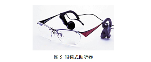 眼镜式助听器:安装在眼镜架腿上,类似耳背式佩戴方式的助听器。