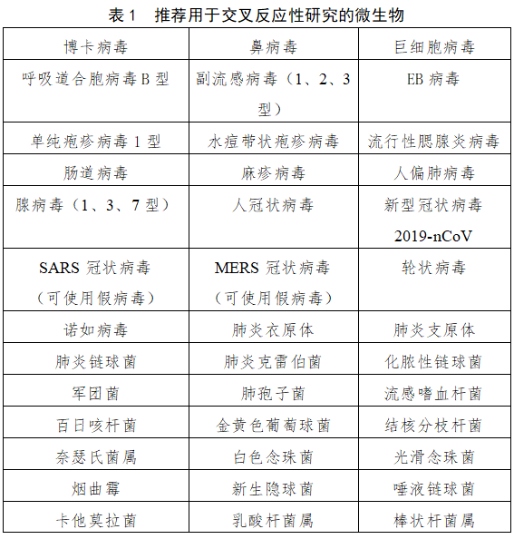 首先,应在流感病毒不同类型和亚型间进行交叉反应验证;其次,采用其他的病原微生物进行验证(见表1)。
