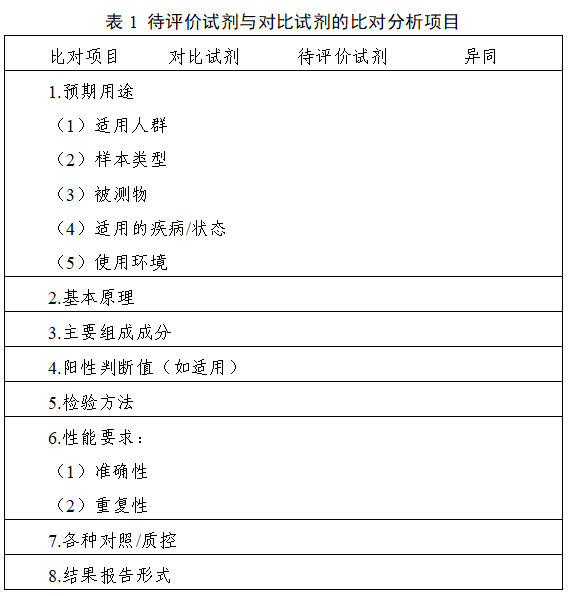 对比试剂需满足以下条件:境内已经取得上市许可;与待评价试剂具有相同的预期用途;优先选择与待评价试剂检测结果偏差较小的试剂,不建议选择性能劣于待评价试剂的作为对比试剂。