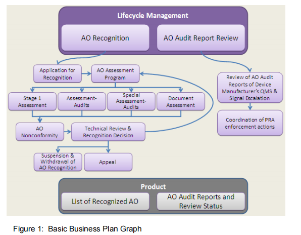 MDSAP 质量管理体系的目标是提升 MDSAP 产品与服务的质量。为实现该目标,MDSAP 将采用 “基于 ISO 18091:2014《质量管理体系 ——ISO 9001:2008 在地方政府的应用指南》的过程导向型质量管理体系”,对已识别的 MDSAP 流程进行管理。本手册规定了 “在质量管理体系框架内,为管理‘向顾客及相关方提供产品与服务所涉及的已识别流程’、满足 ISO 9001:2015 标准要求” 需开展的工作。MDSAP 参与者在执行基本业务计划中的角色如下图所示