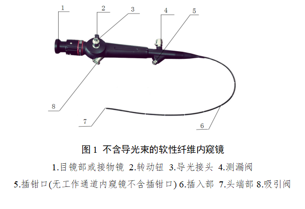 不含导光束的纤维内窥镜由头端部、插入部、操作部、目镜部或接物镜、吸引阀(仅带工作通道内窥镜适用)等组成。